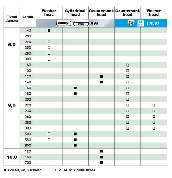 wkręty z pełnym gwintem i łbem stożkowym o średnicy 8 mm w dwóch nowych długościach 120 mm i 140 mm