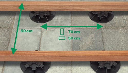 Odstępy między legarami. Dla desek tarasowych o standardowych wymiarach 145 x 25 legary powinny być umieszczone co 50 cm, aby nie uginały sie pod ciężarem konstrukcji. Dla węższych lub szerszych desek odstęp powinien być zmniejszony do 40 cm.