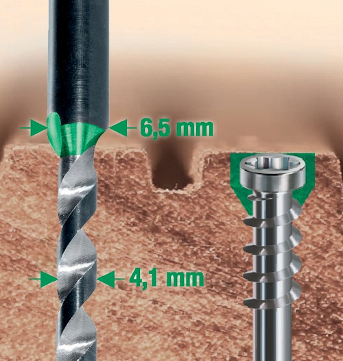 Perfekcyjny wygląd łączenia uzyskamy dzięki zastosowaniu wiertła dwustopniowego SPAX. Zostało ono opracowane specjalnie do wkrętów tarasowych SPAX o średnicy 5 mm i 5,5 mm z główką cylindryczną.