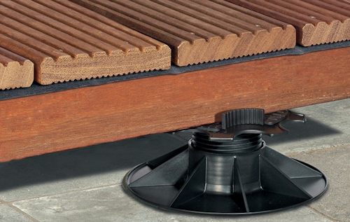 Wskazówka: przy budowie tarasu na papie, ochronna mata włożona między wspornik a warstwę bitumiczną zapobiega przyklejeniu wspornika do podłoża.