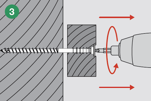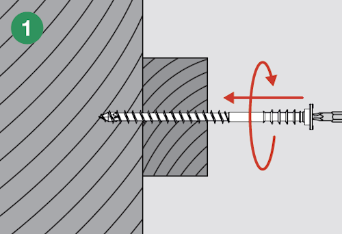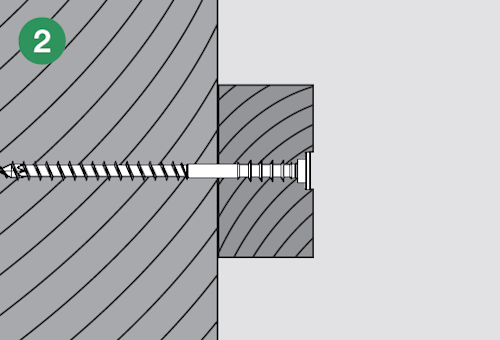 Główkę wkręta należy wpuścić co najmniej 1 mm w element drewniany